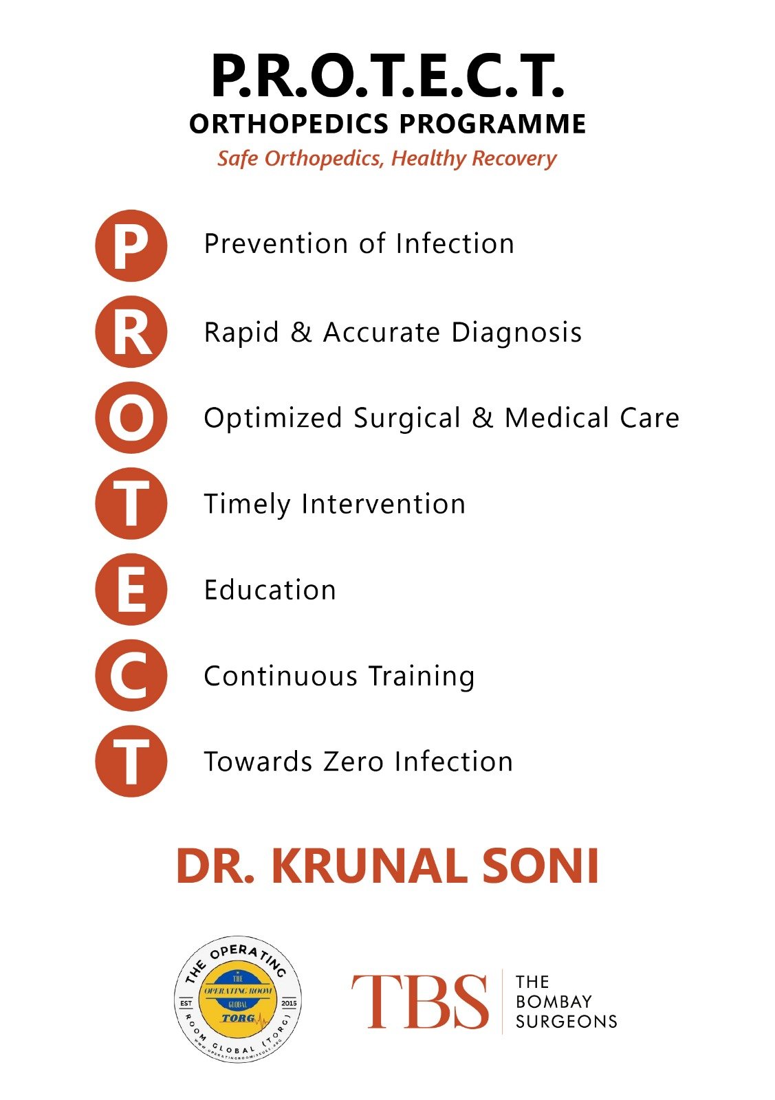 At the core of Dr. Krunal Soni’s orthopedic practice is the P.R.O.T.E.C.T. Programme – a specialized approach designed to ensure patient safety, faster recovery, and long-term results.