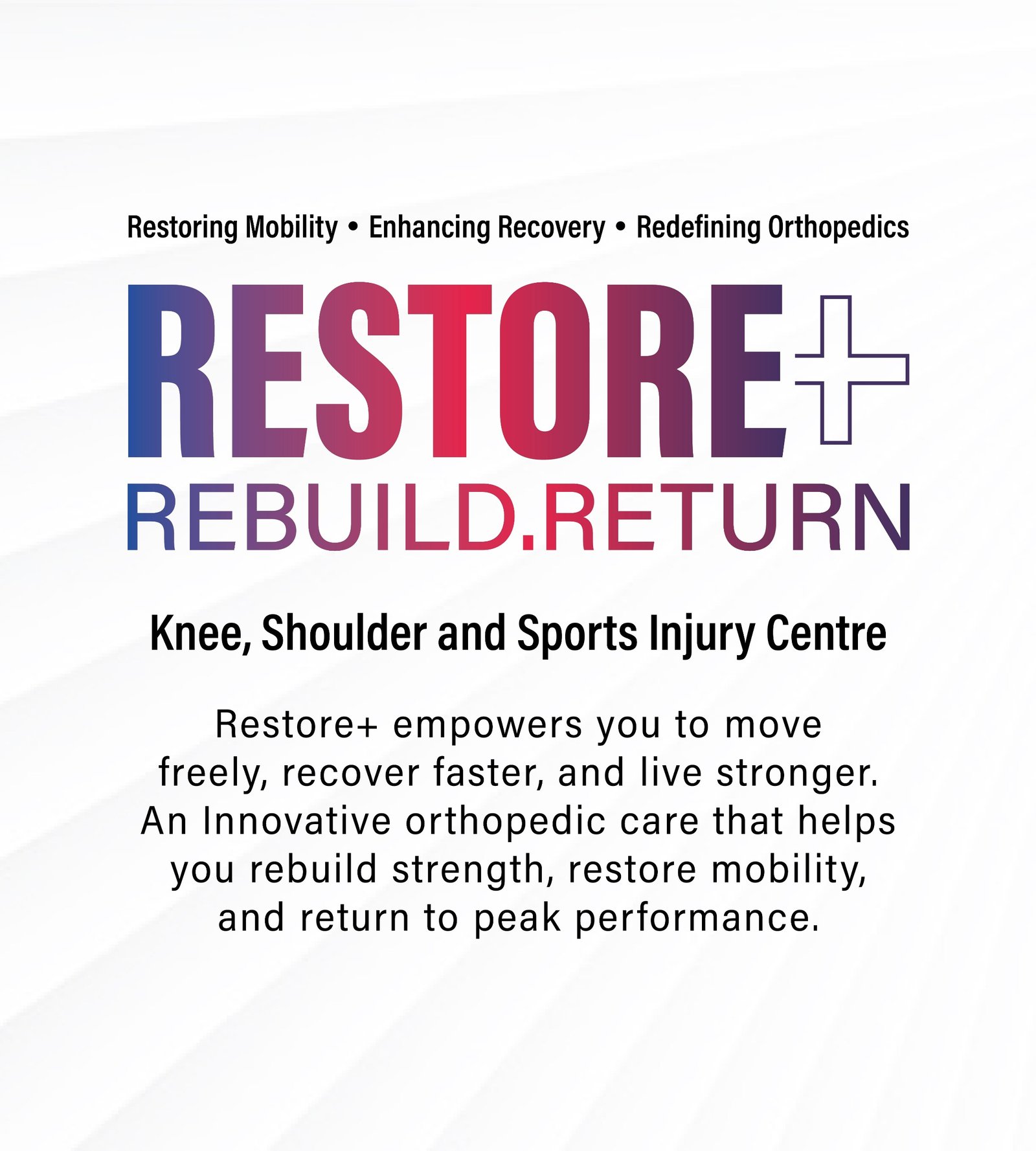 Dr. Krunal Soni has initiated Restore+, a pioneering program dedicated to advanced Knee, Shoulder and Sports Injury care.